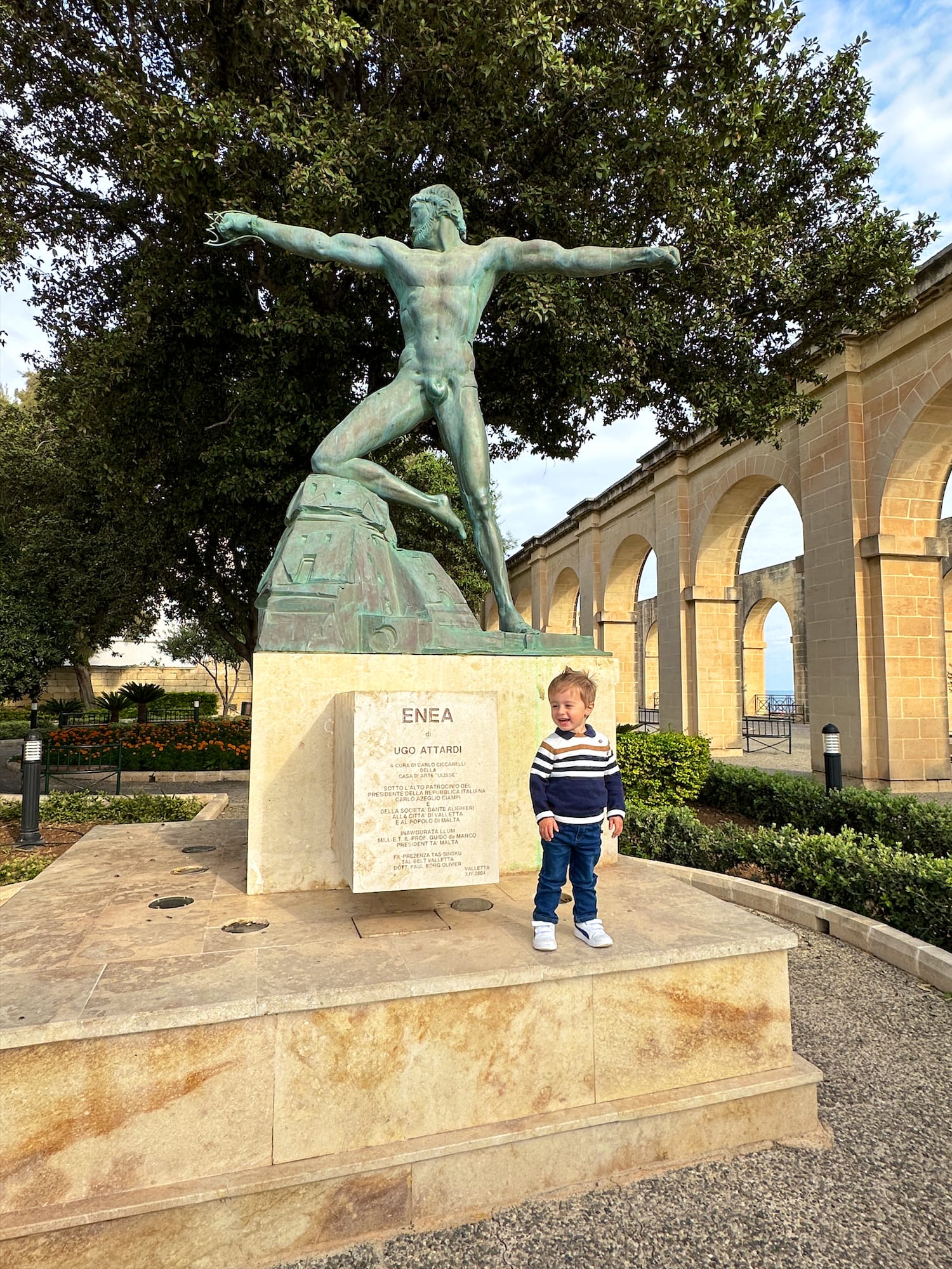 Siamo partiti nel nostro tour a piedi dai Lower Baracca Gardens, a poca distanza dal nostro alloggio. Un tempo giardini privati, sono ora aperti al pubblico e offrono una splendida vista sulla costa e alcuni monumenti, tra cui una statua dedicata a Enea (l'eroe epico).