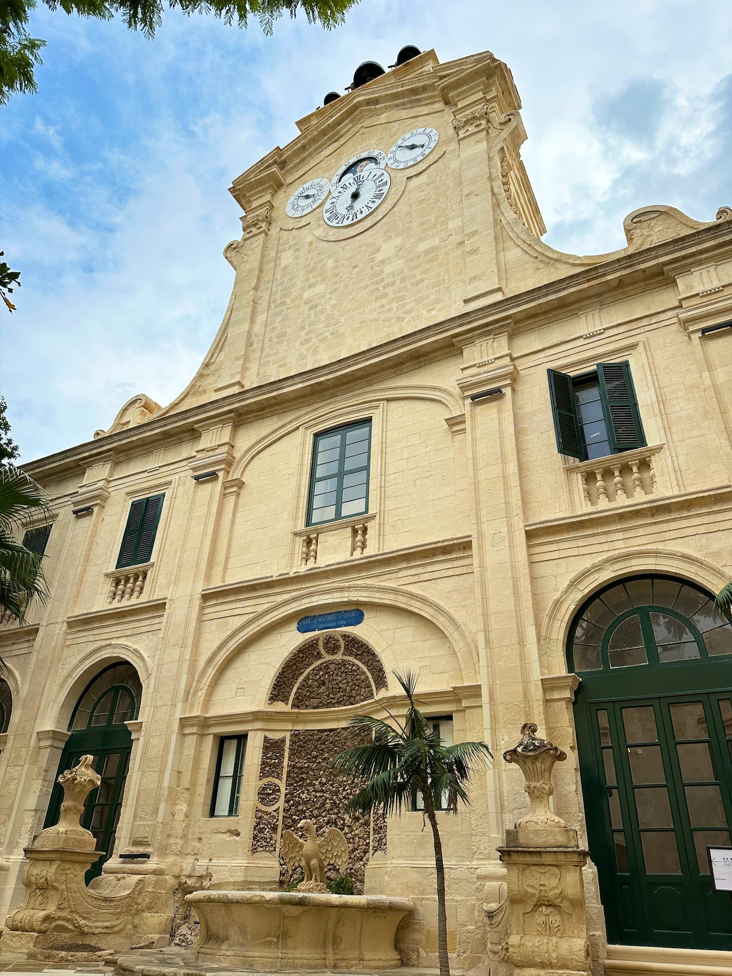 Da qui abbiamo proseguito verso nord-est fino al forte di Sant'Elmo, in cui non siamo entrati, per poi rientrare verso il cuore della città passeggiando lungo Republic Street. Abbiamo quindi visitato il Palazzo dei Grandi Maestri, una delle attrazioni più iconiche e imperdibili sull'isola. Oltre alle due corti interne, tra cui spicca quella dell'Orologio di Pinto a quattro quadranti, le sale interne raccontano la storia della città con soffitti riccamente decorati.